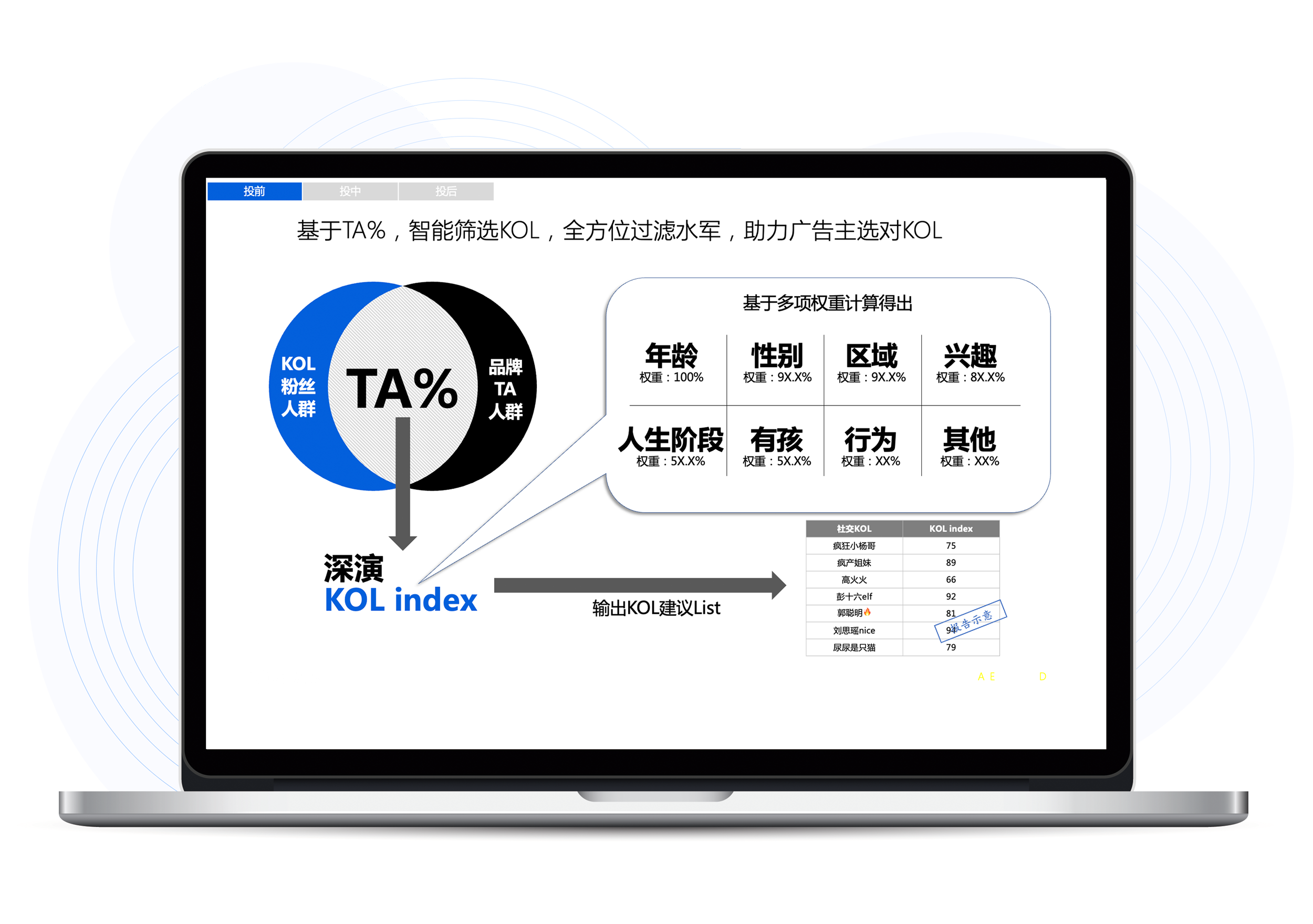 PA旗舰厅K参谋科学前选可以跨领域找到最能影响品牌目标人群的KOL进行投放,同时有效平衡投资回报率